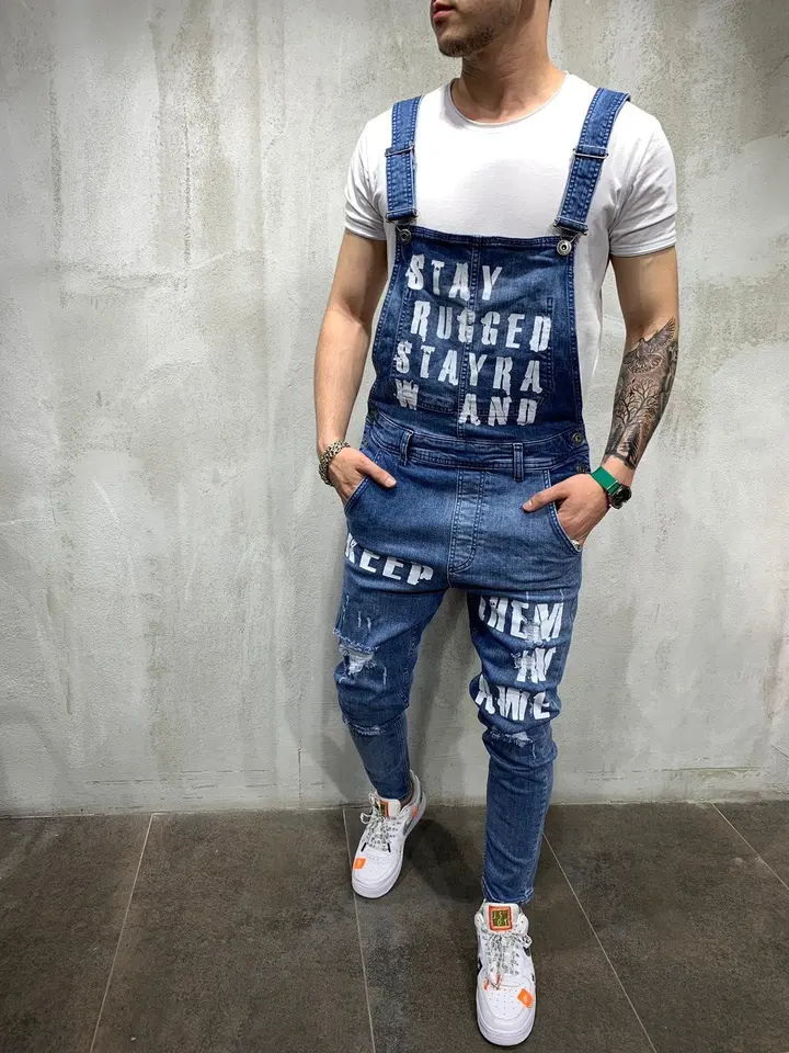 Jumpsuit Men Jean Bib Slime Fit Denim Overalls Men Mono Moto Hombre Letters Salopette Homme Jean Dungarees Men S Printed Jeans Jeans Aliexpress