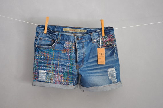 Hand Made Patched Denim Embowered Slime Jeans Reworked Etsy