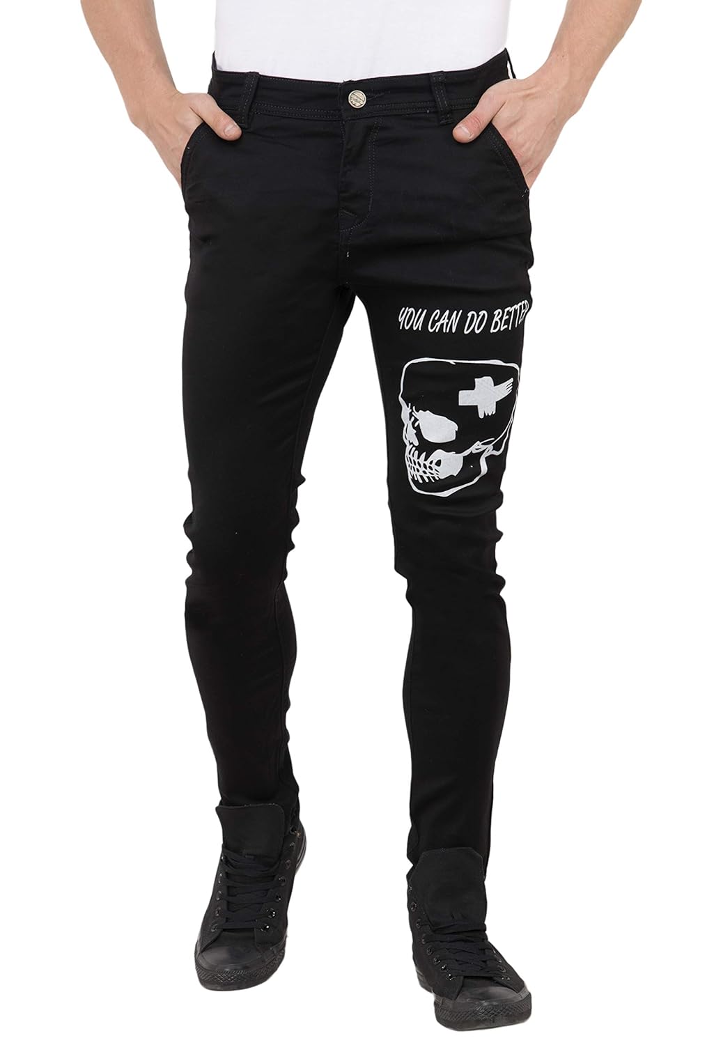 Buy Styzon Black Skull Printed Slime Fit Jean For Men 34 At Amazon In