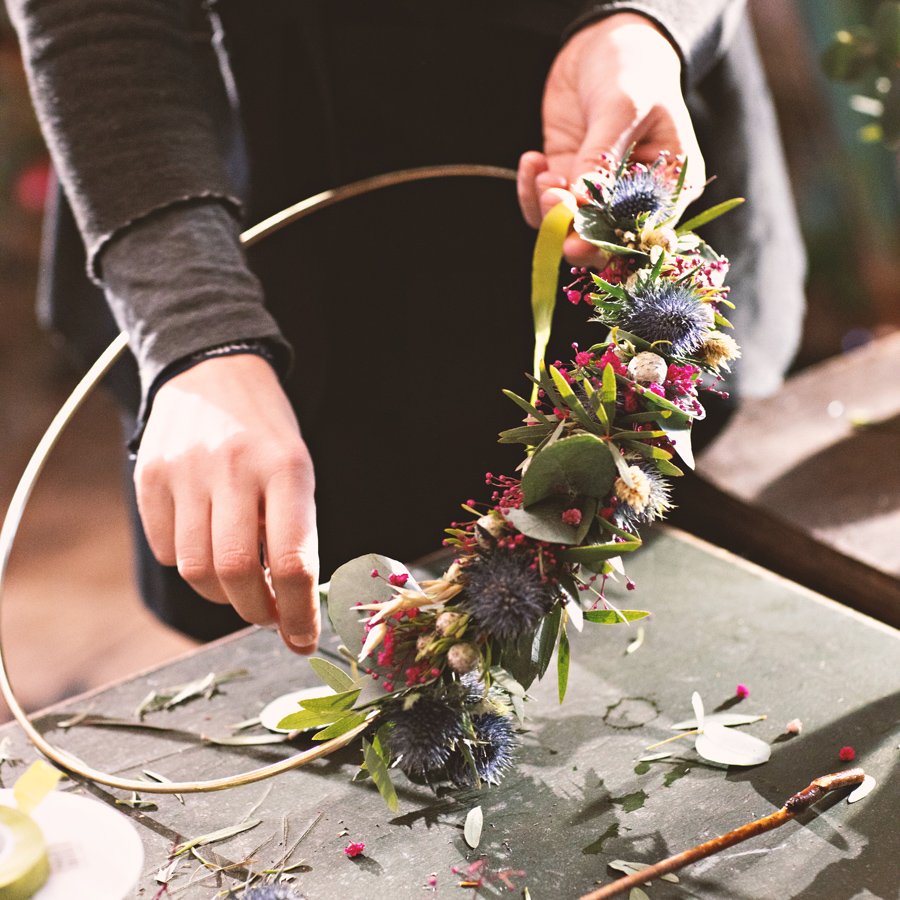 Blumenkranz binden in Hamburg Eine eurer Freundin läuft bald in den Hafen der Ehe ein?. Workshop, Floristikkurs in Hamburg Wolltest Du schon immer mal Deinen Adventskranz selber gestalten?. Die Workshops finden ab einer Gruppengröße von 8 Personen ganz privat für euch statt Im Preis enthalten sind neben dem Workshop mit unserem Creative Head Lena und den zahlreichen Tipps & Tricks natürlich die Blumen sowie alle Materialien die ihr für einen Blumenkranz benötigt.
