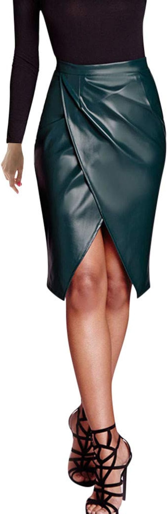 Grace Karin Damen Rock Pu Leder High Low Knielang Bleistiftrock Elegant Hips Wrapped Amazon De Bekleidung