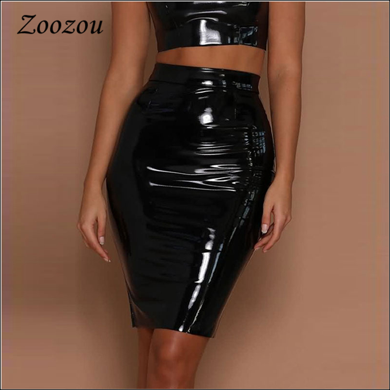 Damen Hohe Taille Kunstleder Bleistiftrock Lack Optik Clubwear Party Lang Rocke Ebay