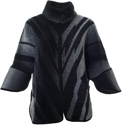 Karin Hertz Strick Poncho Damen Schwarz Grau Mit Reissverschluss Grosse Grossen Amazon De Bekleidung