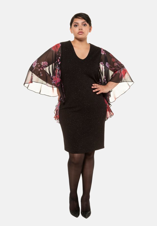 Grosse Grossen Etuikleid Mit Volantarmeln Blumendruck Cocktailkleid Fur Mollige Damen Mode Fur Mollige Frauen