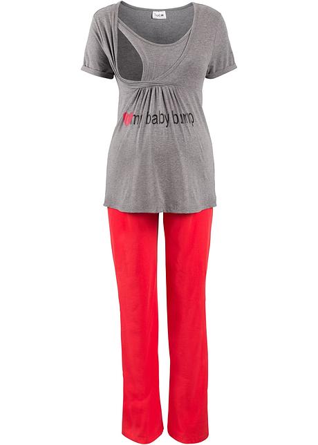 Modischer Schwangerschafts Pyjama Im 2 Tlg Set Mit Eingenahtem Top Grau Meliert Rot Bedruckt