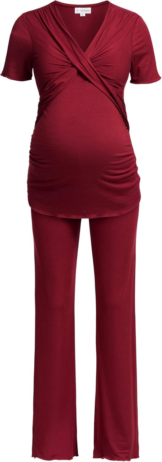 Ucoolcc Still Pyjama Anzuge Fur Schwangerschaft 2 In 1 Frauen Mutterschaft Krankenpflege Kurzarm Einfarbig Set Anzug Schwangerschaft Tops Hosen Umstandskleider Amazon De Bekleidung