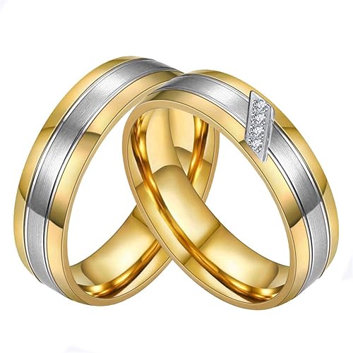 Pauro Paar Edelstahl Titan Stahl Gold Band Mit Zirkonia 6mm Versprechen Hochzeit Und Verlobungsring Amazon De Schmuck