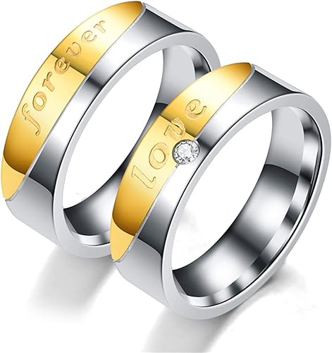 Auedsa Verlobungsring 1paar Ring Gravur Forever Love Zirkonia Weiss Partnerringe Paar Edelstahl Silber Gold Grosse Damen 52 16 6 Herren 52 16 6 Amazon De Schmuck