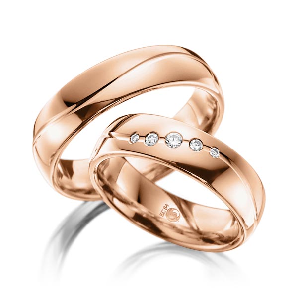 Paar Klassische Trauringe Eheringe In Aussen Rotgold 585 Innen Rotgold 585 Mit Zus 0 1 Ct Herz Diamant Tw Vs Von Acredo A 1805 5