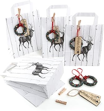 12 Stuck Kleine Verpackung Weihnachten Sackchen Tasche Sackerl Papiertasche Schwarz Weiss Natur Rot Hirsch Tute Weihnachtsgeschenke Verpacken Papiertute Weihnachtlich Kunden Geschenke Amazon De Burobedarf Schreibwaren