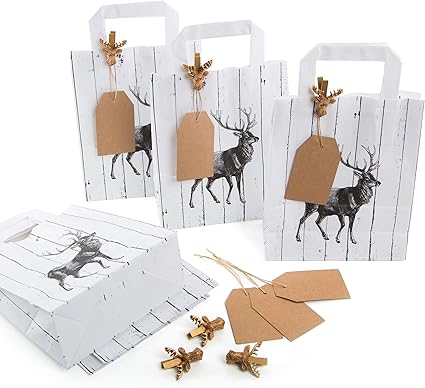 8 Stuck Kleine Verpackung Weihnachten Beutel Sackerl Papiertasche Schwarz Weiss Natur Rot Hirsch Tute Weihnachtsgeschenke Verpacken Papiertute Weihnachtlich Kunden Geschenke Amazon De Burobedarf Schreibwaren