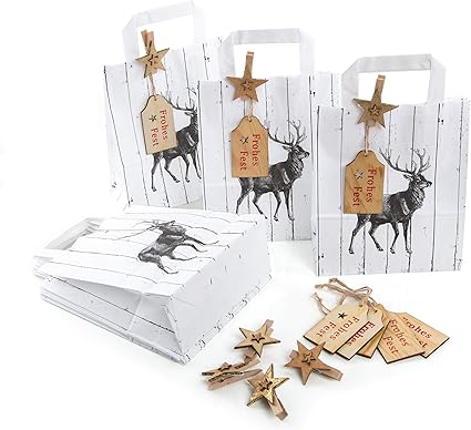25 X Kleine Weihnachtsgeschenke Verpackung Papiertute Grau Silber Weiss 25 Weihnachtliche Holz Anhanger Hirsch Rentier Gold Natur Fur Kunden Mitarbeiter Amazon De Burobedarf Schreibwaren