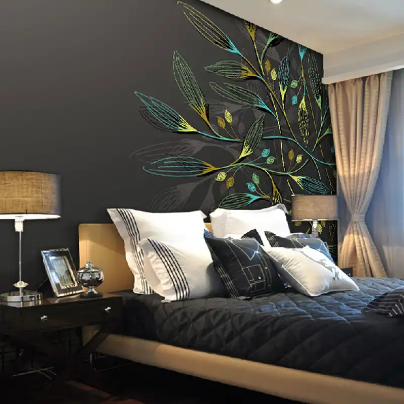 Vlies Tv Hintergrund Wand Malerei Dark Wohnzimmer Hintergrund Wand Tapete Abstrakte Personlichkeit Blatter Blatter Grosse Wandbilder Tapeten Aliexpress