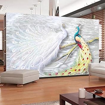 Lxsart Benutzerdefinierte Tapete 3d Pfau Grosse Wandbilder Wohnzimmer Schlafzimmer Sofa Tv Hintergrund Dekor Tapeten Stroh Strukturierte Wandbild 350cmx245cm Amazon De Baumarkt