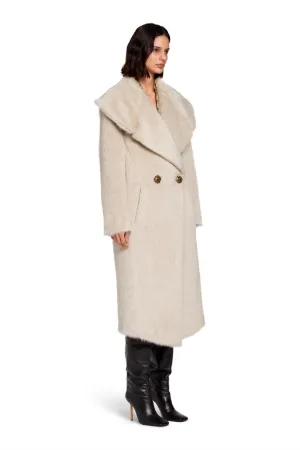Dunkelbeige Zweireihiger Sherpa Mantel Terranova