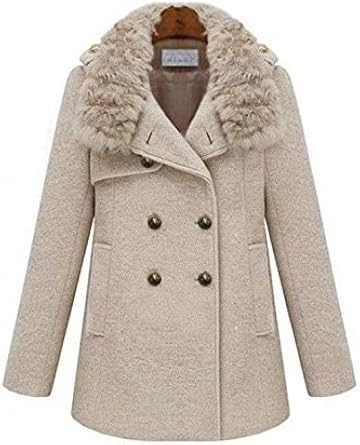Damen Beige Wollmischung Zweireihiger Mantel Mit Hohem Kragen Amazon De Bekleidung