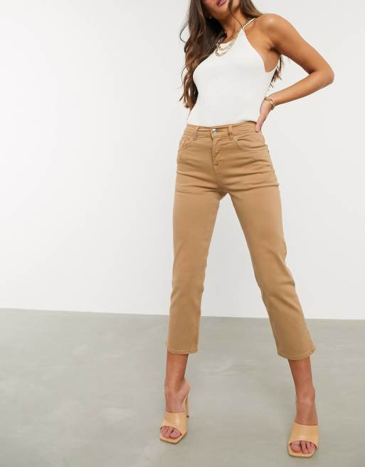 Asos Design Petite Hellbraune Slim Stretch Jeans Mit Geradem Beinschnitt Und Hoher Taille Asos