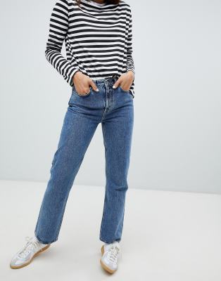 Weekday Rowe Legere Jeans Mit Geradem Beinschnitt Aus Bio Baumwolle In Verwaschenem Blau Asos