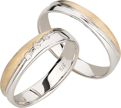 Ardeo Aurum Trauringe Damenring Und Herrenring Aus 375 Gold Bicolor Gelbgold Weissgold Mit 0 06 Ct Diamant Brillant Eheringe Paarpreis Amazon De Schmuck