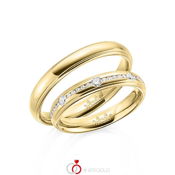 Paar Klassische Trauringe Eheringe In Gelbgold 750 Mit Zus 0 22 Ct Brillant Tw Si Von Steinberg