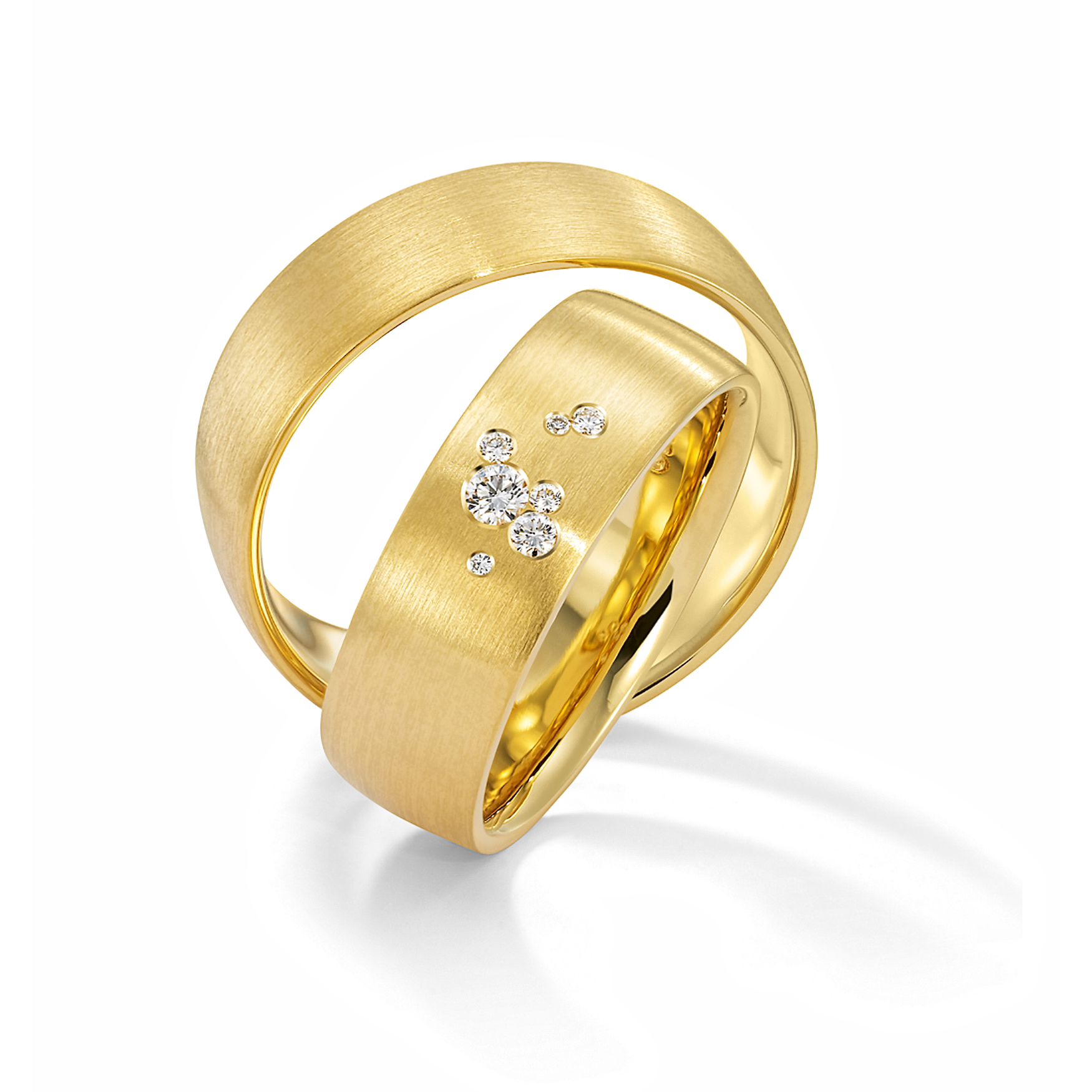 Goldschmiede Mojo Design Eheringe Gelbgold Brillanten