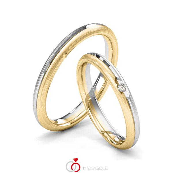 Paar Bicolor Trauringe Eheringe In Weissgold 585 Gelbgold 585 Mit Zus 0 025 Ct Brillant Tw Si Von Merii