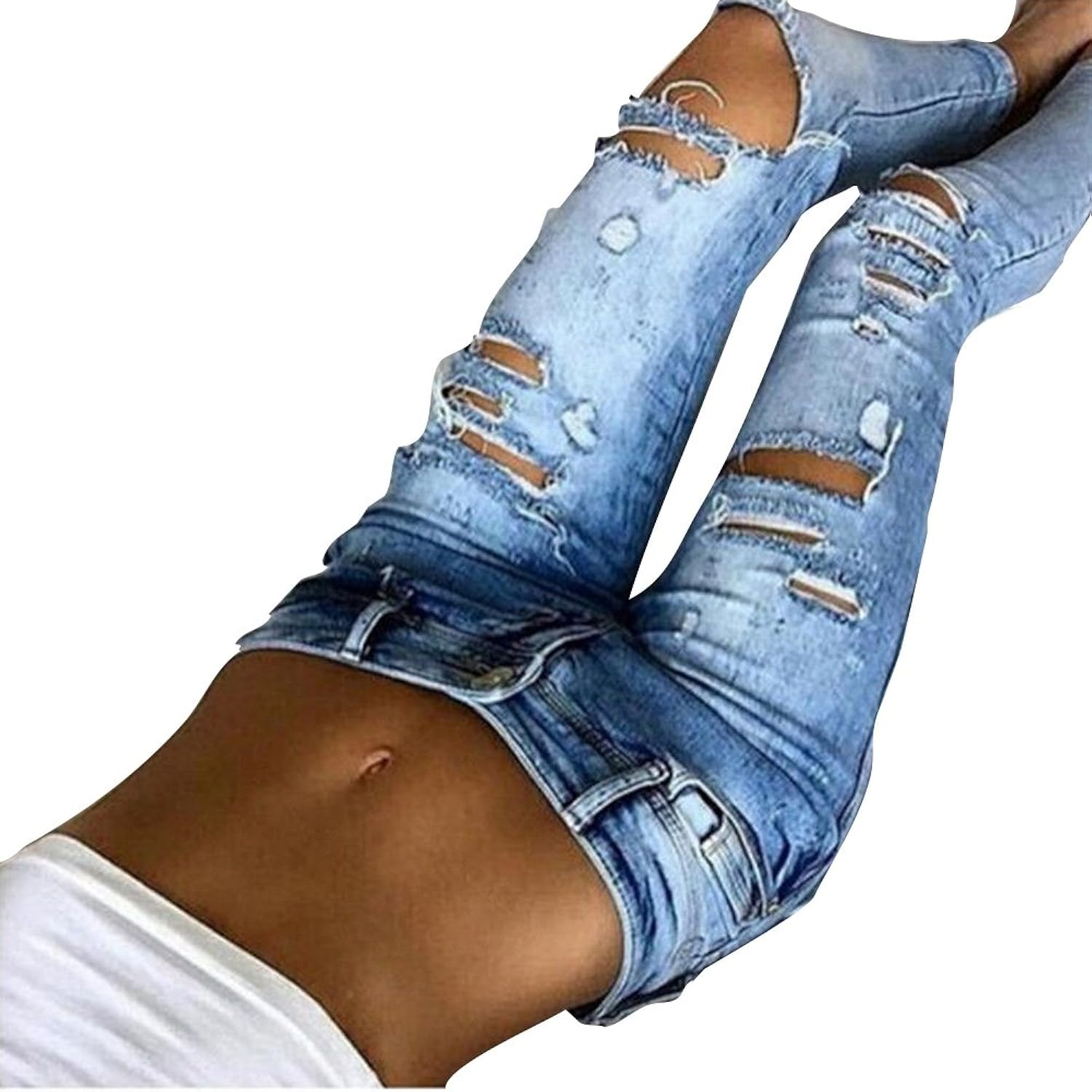 Damen Destroyed Zerrissen Locher Rohrenjeans Skinny Hosen Distressed Denim Jeans Ebay