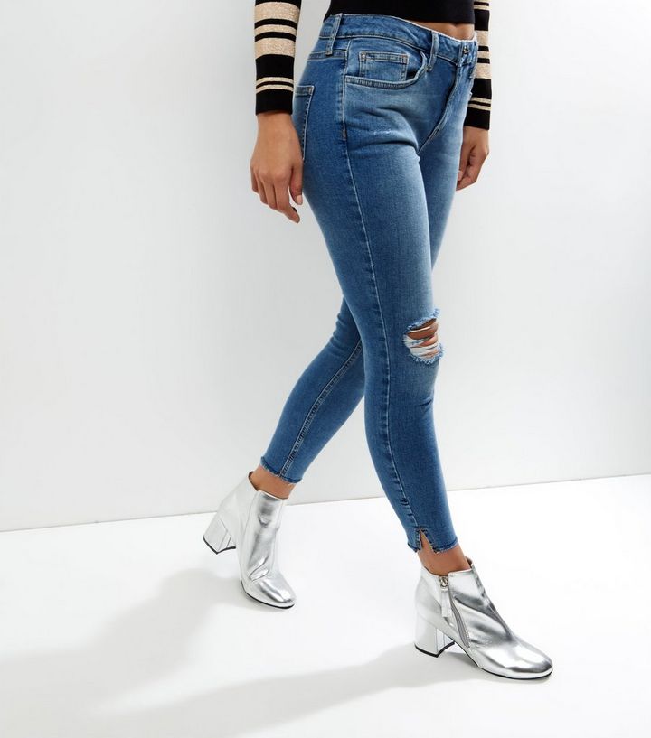 Petite Blaue Skinny Jeans Mit Zerrissenen Knien New Look
