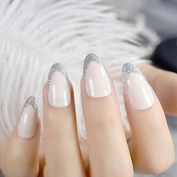V Form French Kunstliche Fingernagel Silber Glitzer Dekoration Beige Medium Sharp Acryl Fake Nail Art Tipps Fur Die Dekoration Werkzeug Z777 Amazon De Beauty