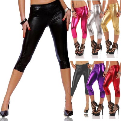 3 4 Capri Leggings Wet Look Gloss Matt Many Colours S L Xl Xxl 3xl P950 For Sale Online Ebay