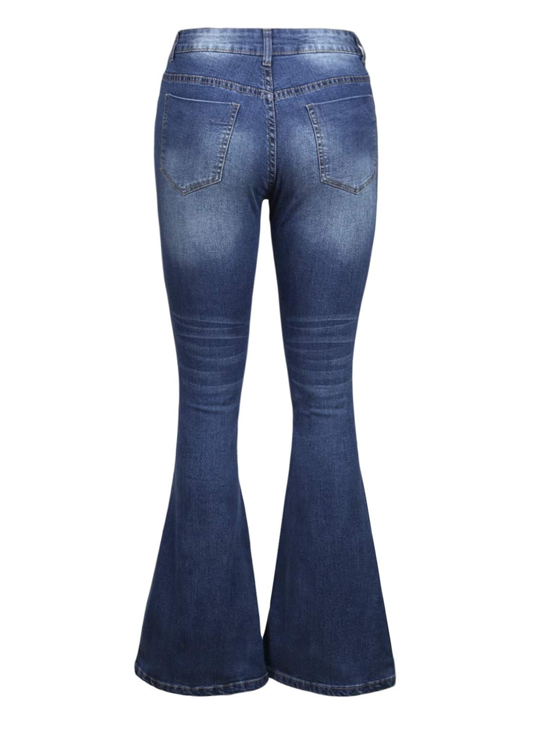Blue Pocket Ripped Destroyed High Waisted Vintage Long Jean Pants Pants Bottoms