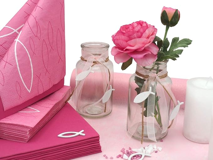 Tischdeko Kommunion Konfirmation Pink Rosa Weiss Fisch Set Personen