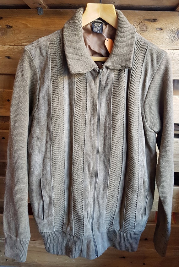 1960s Vintage Mens Grey Brown Suede Front Cardigan Large Etsy
