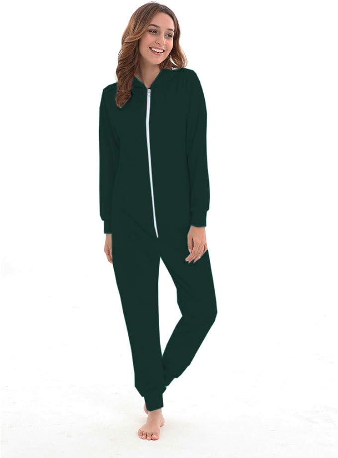 Berdith Jumpsuit Damen Kuschelig Schlafanzug Onesie Schlafoveralls Mit Kapuze Einteiler Pyjamas Langarm Strampler Mit Reissverschluss Fur Frauen Madchen Nachtwasche Bademantel Schlafoveralls