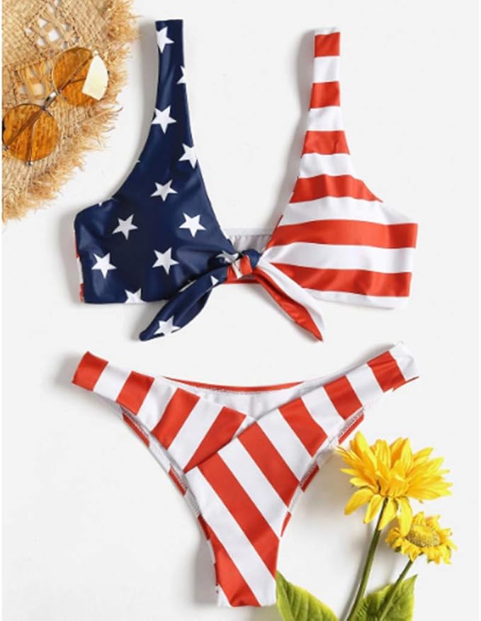 Badeanzug Damen Grosse Grossen 50 Oyedens 50er Jahre Damen Bademode Bikini Set Push Up High Waist Amerikanische Flagge Amazon De Bekleidung