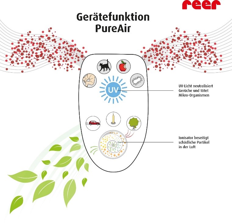 Reer Pureair Ionen Luftreiniger Wirkungsvolle Desinfektion Der Raumluft Mit Aktiv Sauerstoff Und Uv C Licht Klinik Technologie Beseitigt 99 9 Der Keime In Der Luft Amazon De Baby