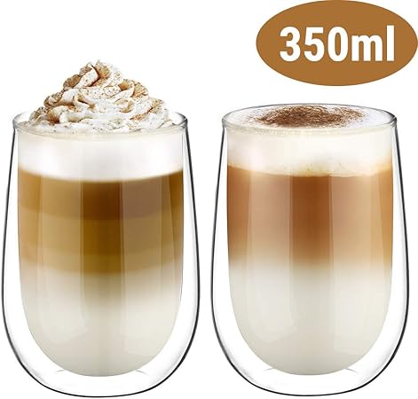 Amazon De Ecooe Doppelwandige Cappuccino Tassen Glaser Latte Macchiato Glaser Set 2 Teiliges 350ml Volle Kapazitat Trinkglaser Kaffeeglas F8 5 10 5cm