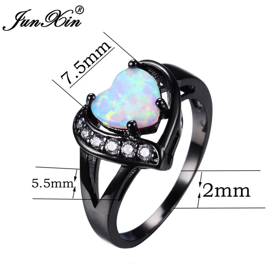 Junxin Frauen Weiss Feueropal Herz Ring Mit a Zirkon Schwarz Gold Ring Versprechen Verlobungsringe Brautmode Schmuck Engagement Ring Fashion Engagement Ringheart Ring Aliexpress