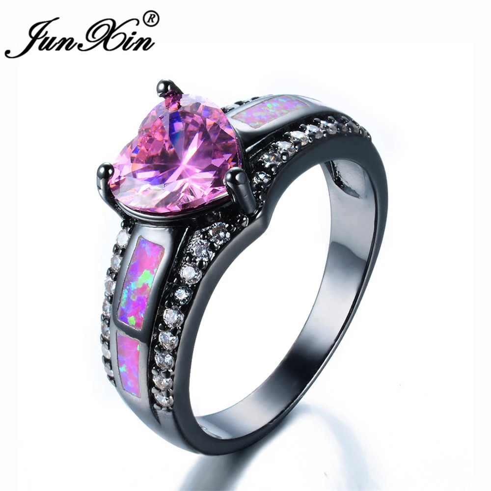 Junxin Romantischen Weiblichen Prinzessin Rosa Feueropal Herz Ring Schwarz Gold Gefullt Schmuck Versprechen Verlobungsringe Fur Frauen Engagement Rings For Women Engagement Ringrings For Women Aliexpress
