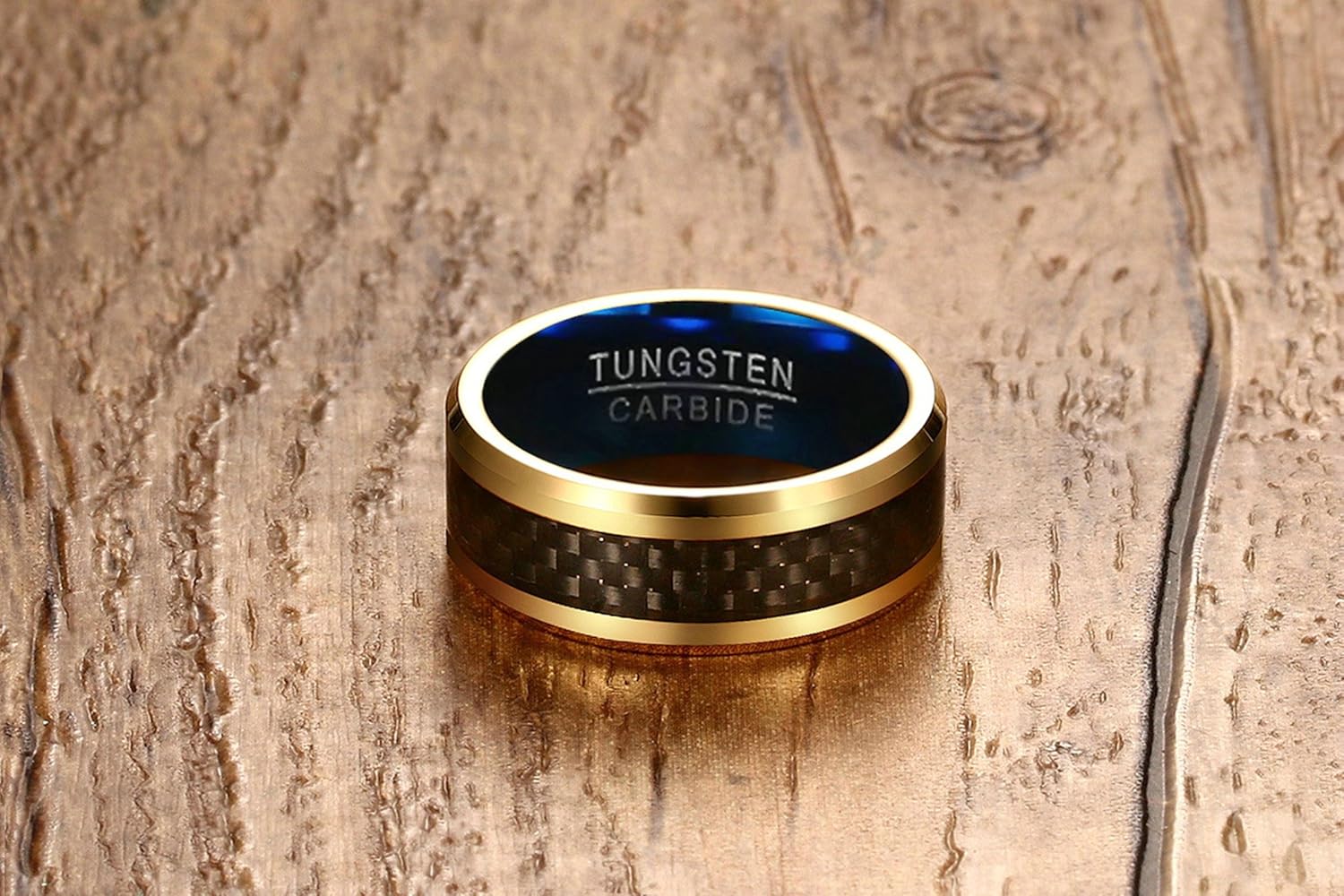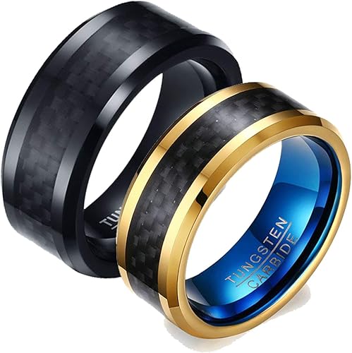 Aeici Ringe Damen Herren Verlobungsringe Paar Wolfram Schwarz Gold Ring 8mm Kohlefaser Schwarz Gold Ring Paar Fur Mann Und Frau Amazon De Schmuck