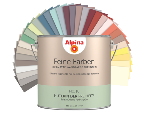 Alpina Farbrezepte Zartes Puder 2,5l Das helle Grün wirkt regenerierend und erholsam und ist damit ideal fürs Schlafzimmer geeignet Die dezente Farbe brilliert an der Wand als Solokünstler, lässt sich aber auch gern stimmig kombinieren. Alpina Farbrezepte „Zartes Puder" ist ein stimmungsvoller GrauTon, der durch eine BraunNuancierung aufgewärmt ist Es lässt sich harmonisch sowohl mit den bunten, als auch mit unbunten Tönen des Farbrezepts „einfach geborgen" kombinieren. Welche Farbe soll´s denn heute sein?.