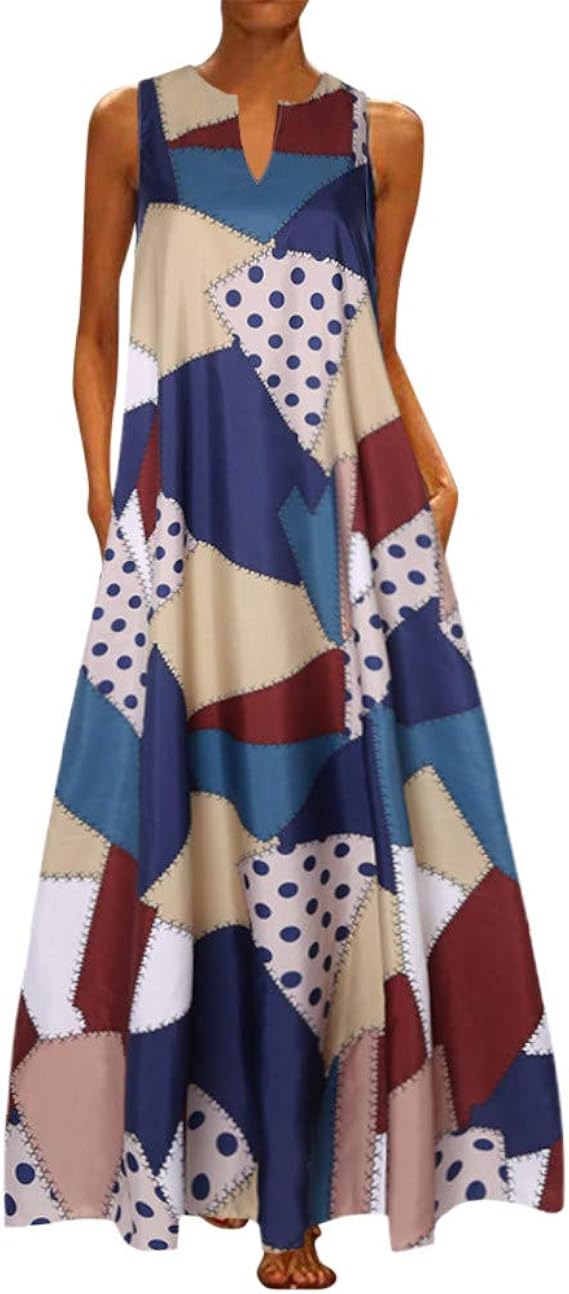 Sommerkleider Damen Langes Kleider Grosse Grossen Mode Frauen Losen Armelloses Oansatz Unregelmassiges Druck Retro Beilaufiges Kleid Sommer Maxikleid Tunika Kleid Strandkleid Amazon De Bekleidung