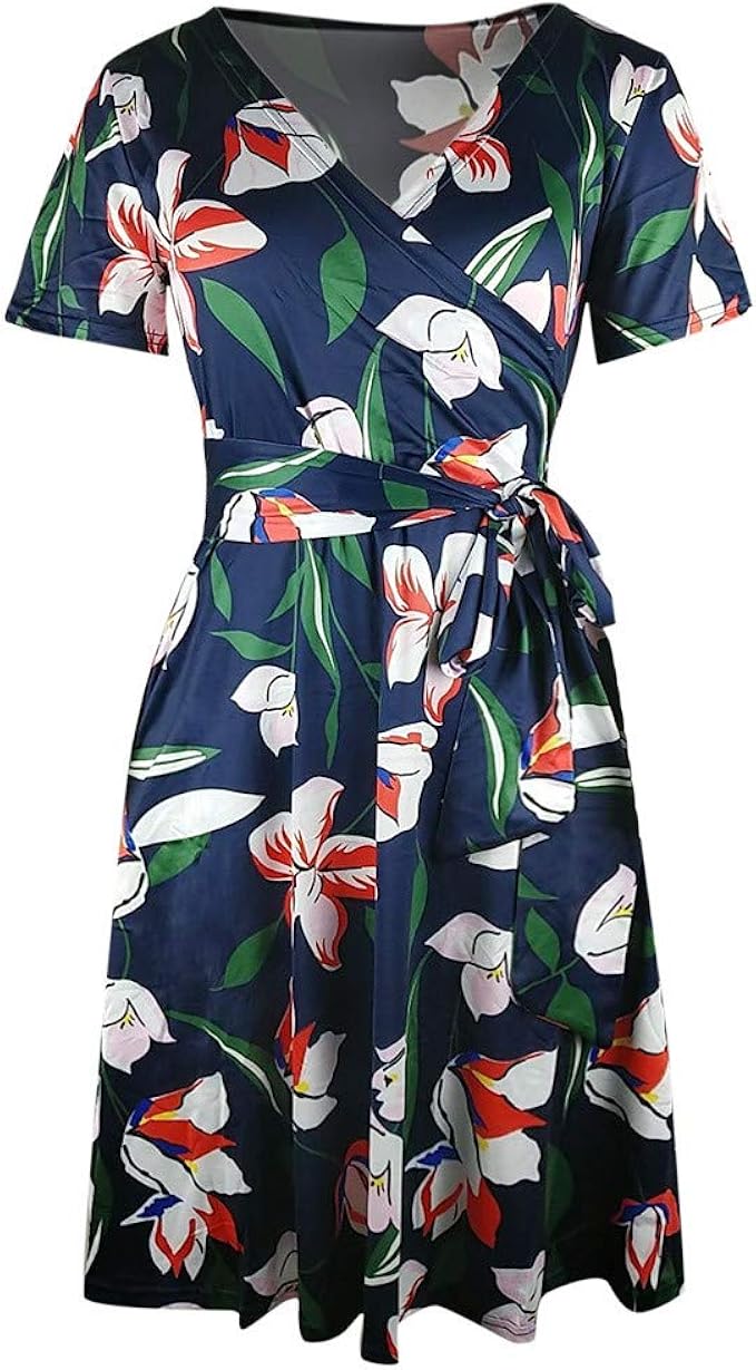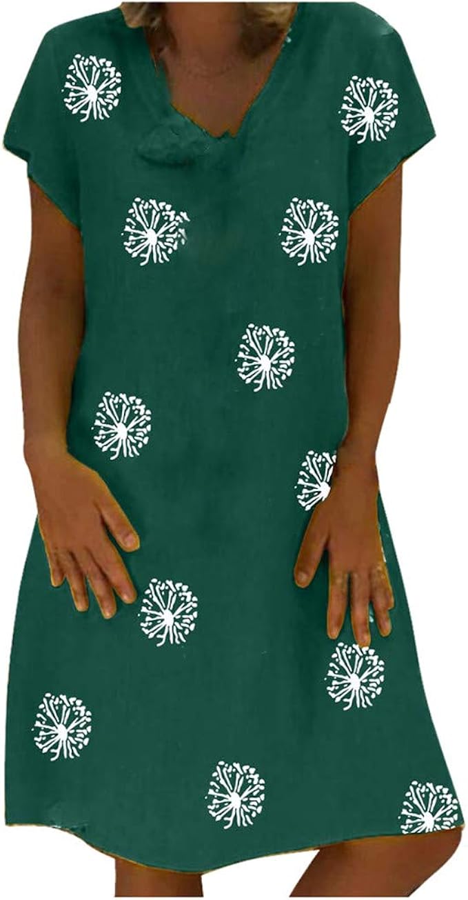 Yidarton Damen Sommerkleider V Ausschnitt Strandkleider Grosse Grossen Kurzarm Casual A Linie Kleid Boho Kleid S 5xl Amazon De Bekleidung