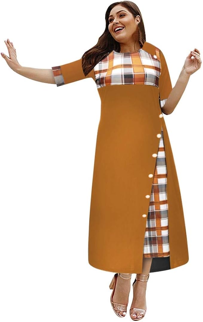 Ansenesna Kleider Damen Grosse Grossen Sommer Lang Asymmetrisch Elegant Kleid Mit Knopfen Frauen Kariert Vintage Kurzarm Maxi Sommerkleider Amazon De Bekleidung
