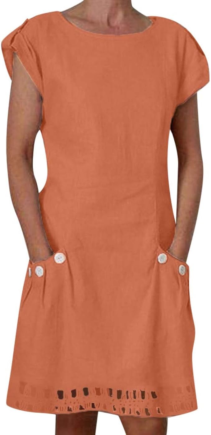 Wusiky Leinenkleid Damen Sommerkleid Grosse Grossen Kaftan Kleid Lang Sommer Casual Rundhals Lace Shift Daily Buttoned Dekor Kleider Boho Strandkleid Maxikleid Elegant Leinenkleider Orange Xl Amazon De Bekleidung