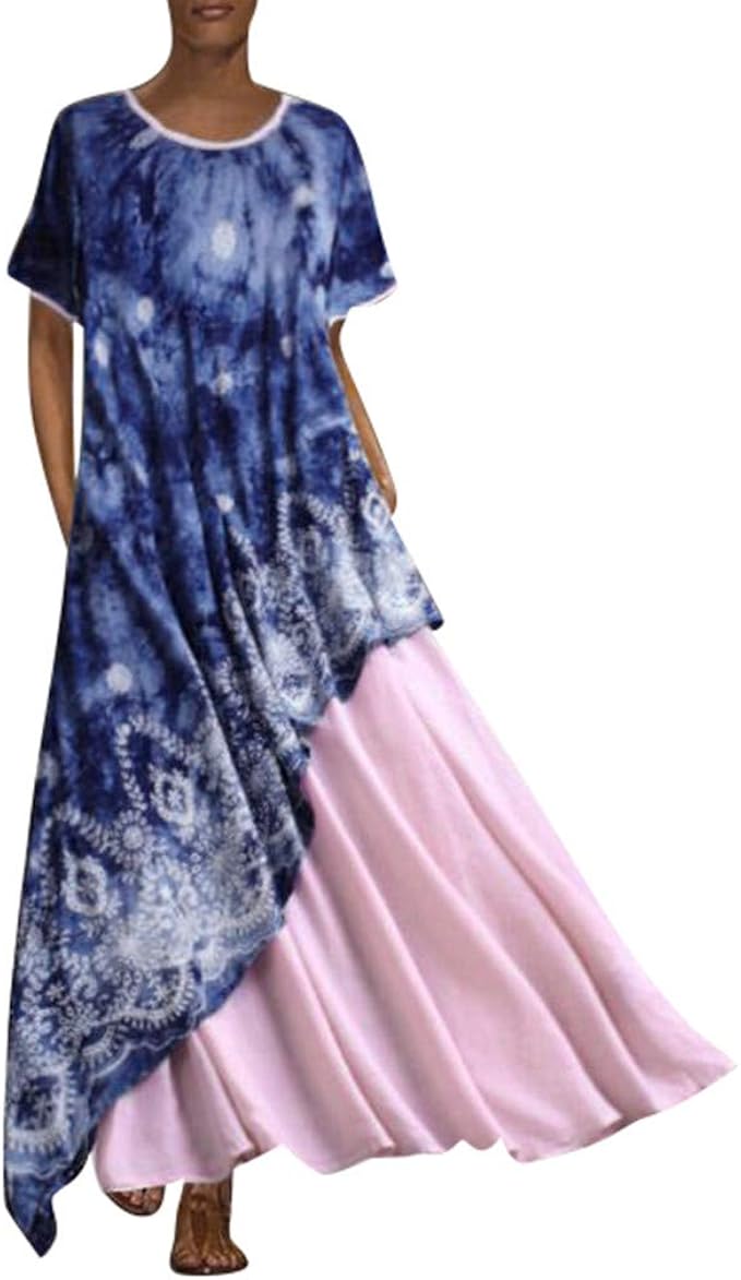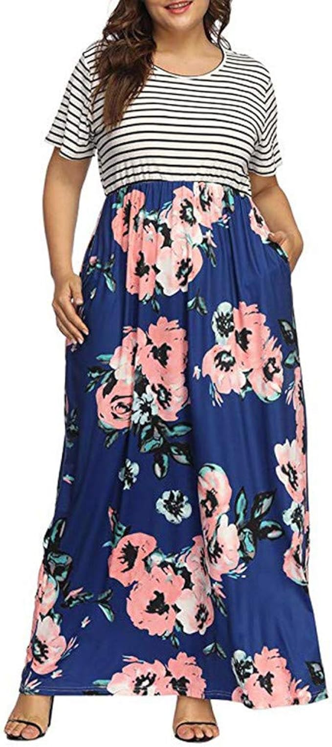 Sommerkleider Damen Langes Kleider Grosse Grossen Frauen Kurzarm Normallackkleid O Neck Langes Kleid Mit Taschen Maxi Kleid Lassige Kleidung Strandkleider Tunika Kleid Partykleider Amazon De Bekleidung