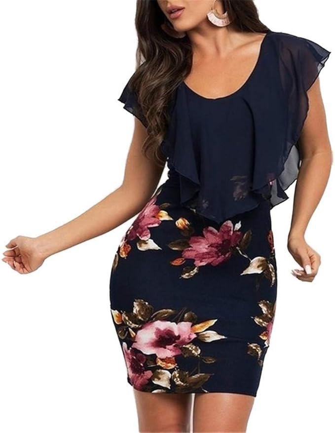 Teaio Damen Etuikleid Mit Volant Bleistiftkleid Blumen Businesskleid Elegant Chiffon Sommerkleid Eng Kleid Bodycon Blumenmuster Kleider Grosse Grosse Blau M Amazon De Bekleidung