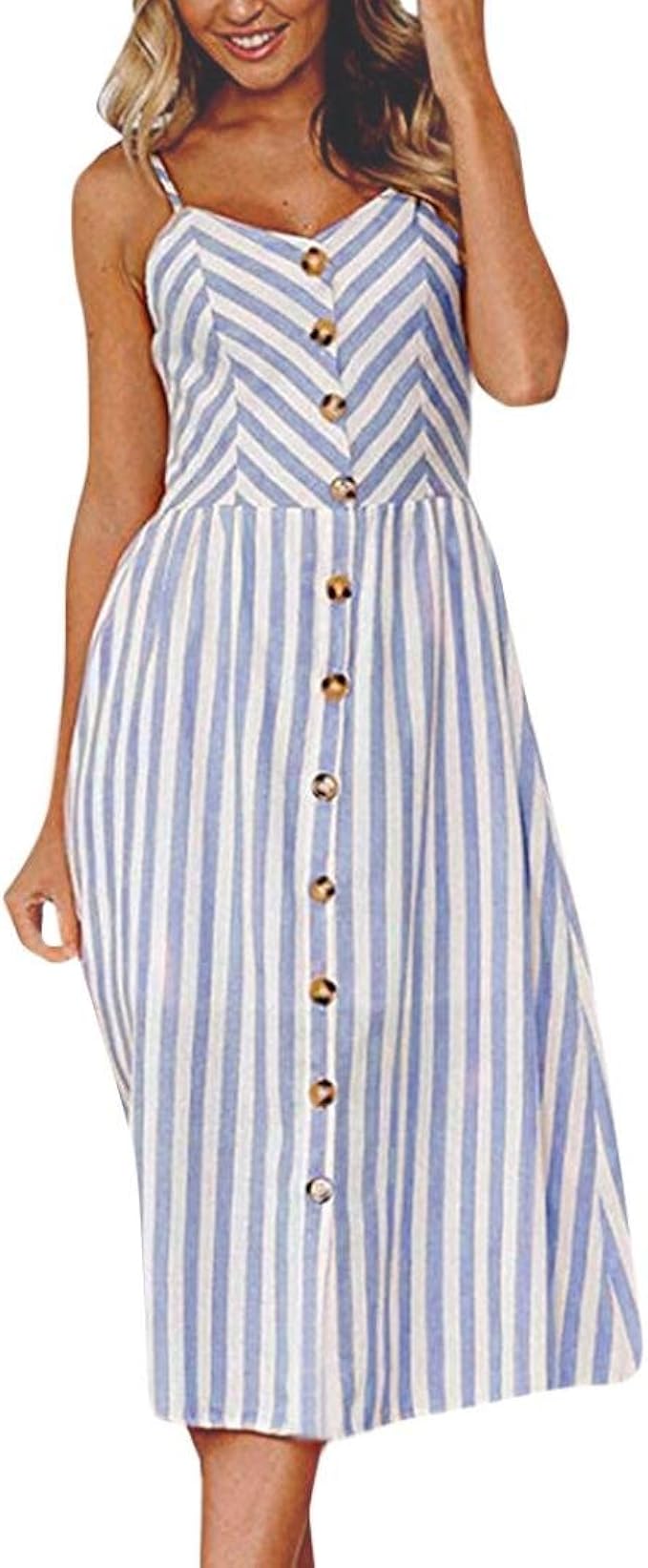 Hevoiok Damen Sommerkleider Streifen Frauen Armellos Kleider Grosse Grossen Prinzessin Abendkleid Partykleid Mit Knopf Amazon De Bekleidung