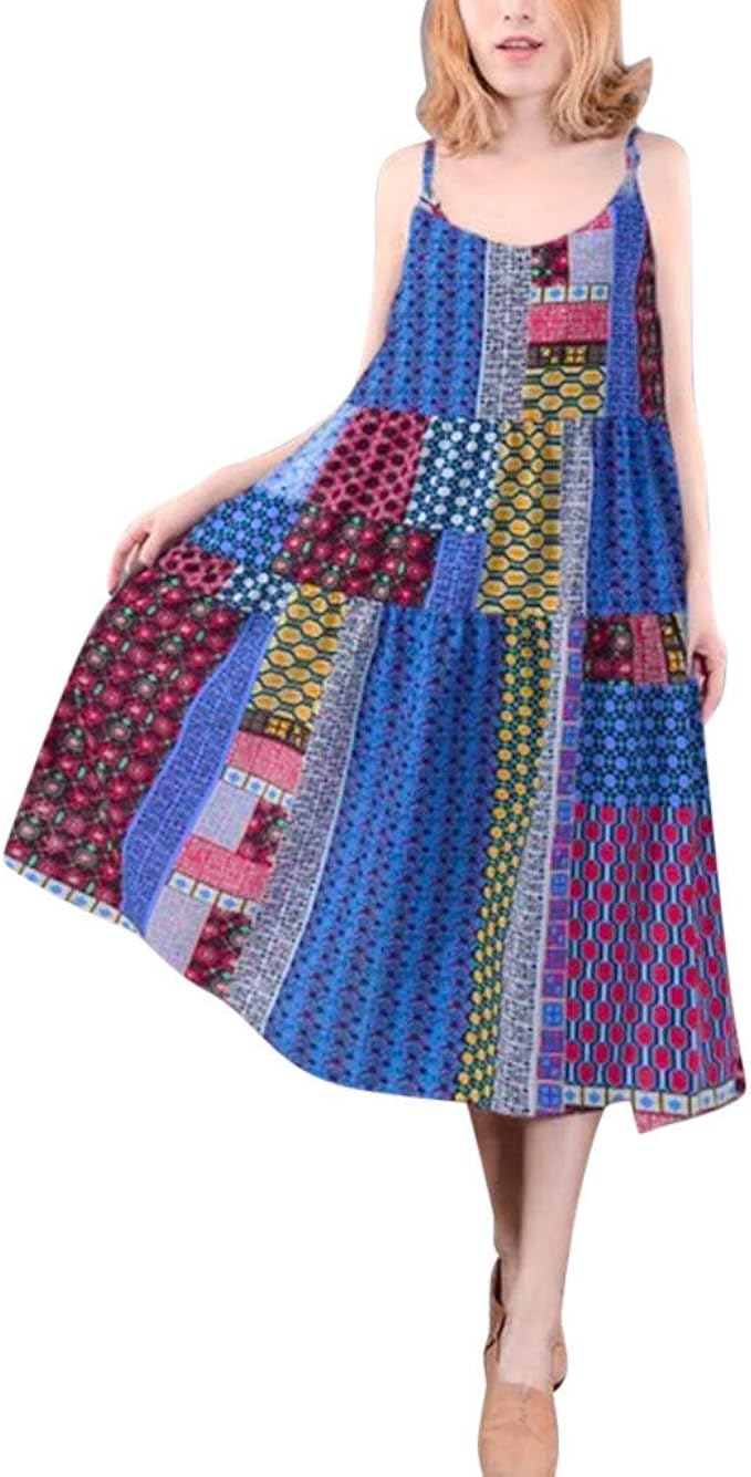 Sommerkleider Damen Langes Kleider Grosse Grossen Frauen Vintage Bohemian Blumenmuster Armellose Sling O Neck Straps Maxi Kleid Baggy Kaftan Strandkleider Tunika Kleid Etuikleid Amazon De Bekleidung