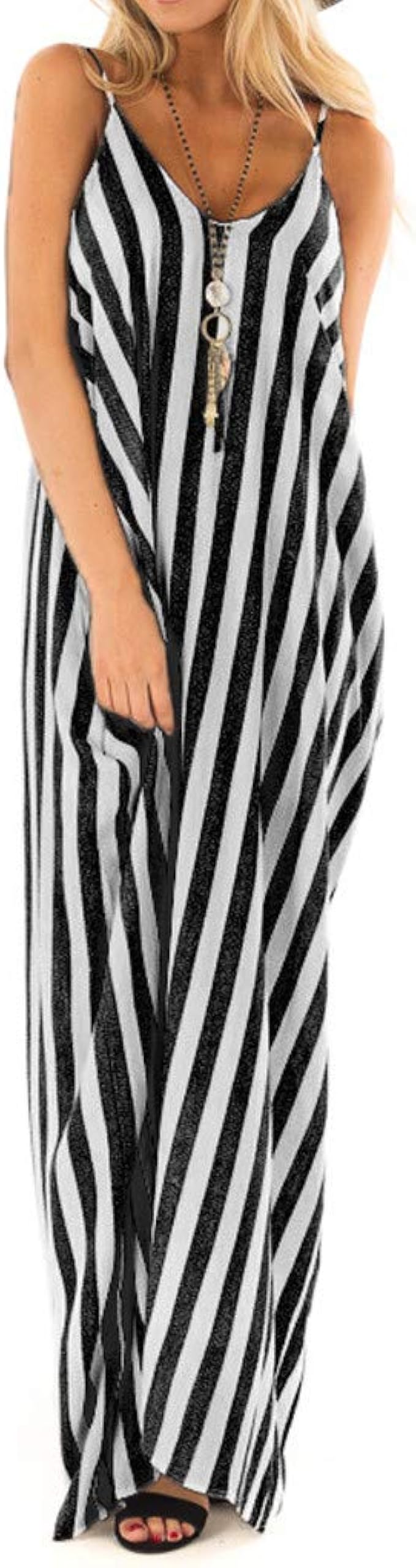 Sommerkleider Damen Langarm Kleider Grosse Grossen Sommer Frauen Weste Kleid Gestreiften Armellos V Ausschnitt Party Beilaufiges Loses Langes Kleid Strandkleider Tunika Kleid Amazon De Bekleidung
